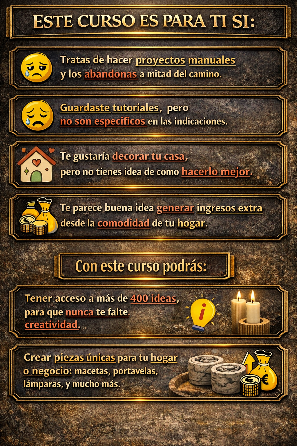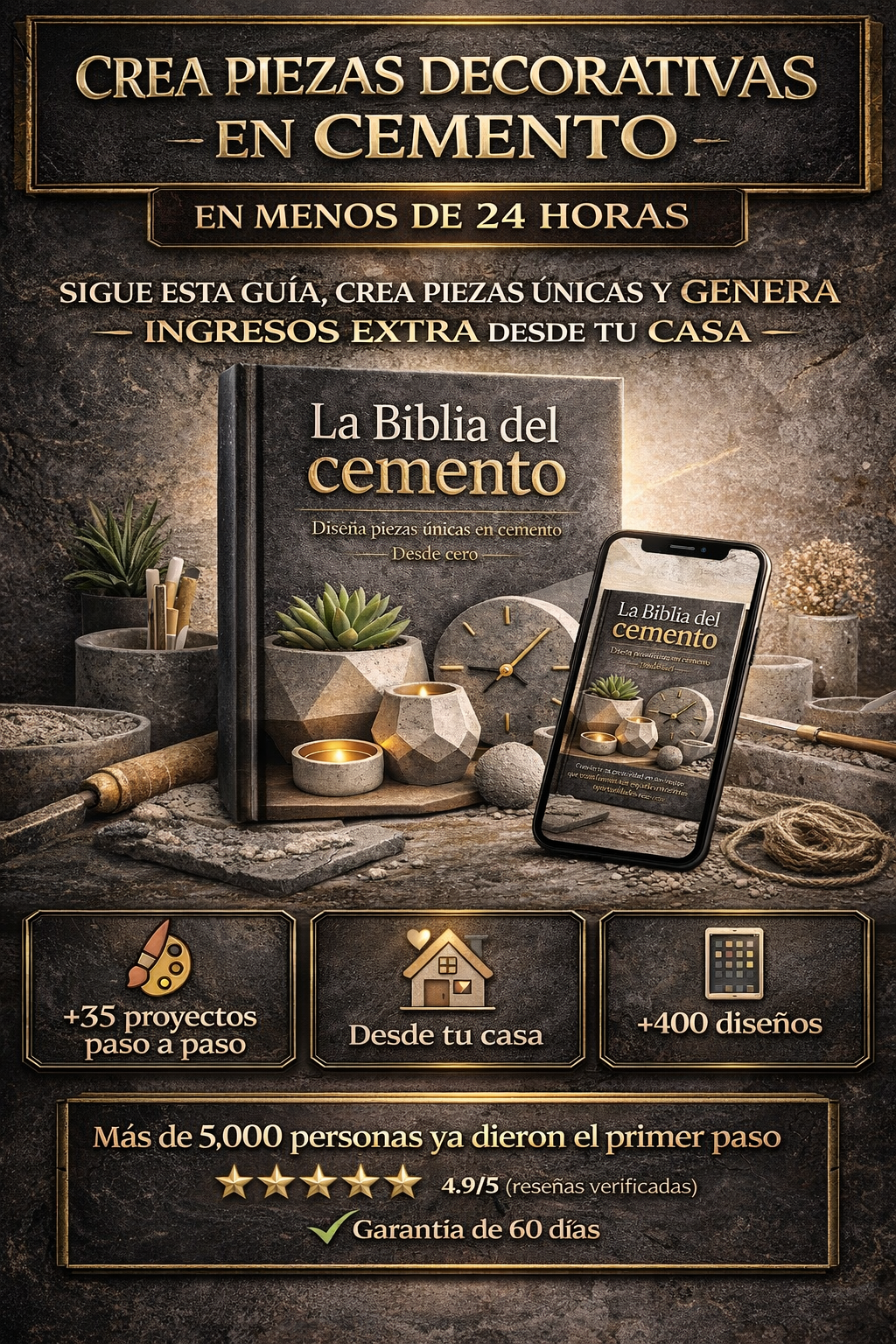 No. La guía está diseñada desde cero. Aprenderás paso a paso cómo crear piezas en cemento aunque nunca hayas hecho manualidades antes. Todo está explicado de forma simple y práctica.